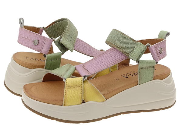 Najnowsze, oryginalne, skórzane i zaskakująco wygodne sandały damskie, hiszpańskiej marki Carmela 161551 wielokolorowe.