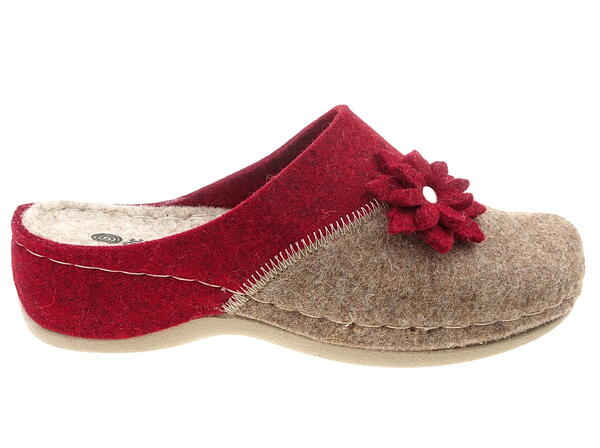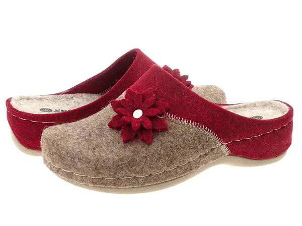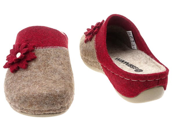 Oryginalne, komfortowe, najnowsze bardzo ciepłe kapcie damskie renomowanej marki Dr.Brinkmann 320275 w kolorze bordowo-beżowym z kwiatkiem.