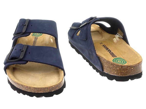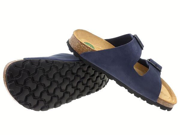 Klapki wykonano z bardzo wysokiej jakości skóry naturalnej, nubukowej miękkiej i przyjemnej w dotyku, która idealnie układa się do stopy.
