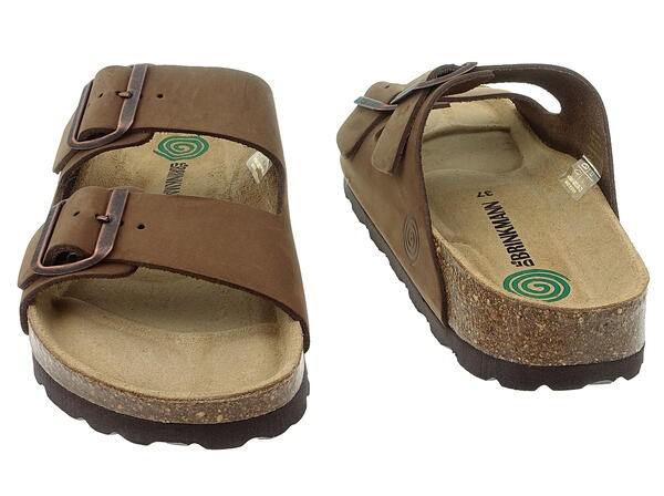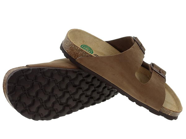 Klapki wykonano z bardzo wysokiej jakości skóry naturalnej, nubukowej miękkiej i przyjemnej w dotyku, która idealnie układa się do stopy.