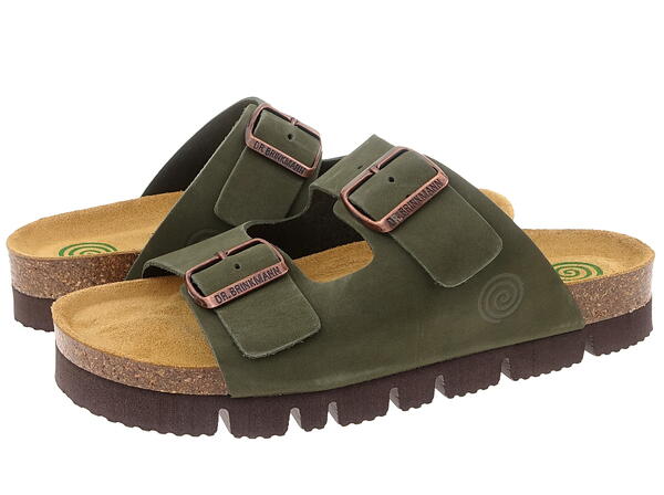 Komfortowe, oryginalne, najmodniejsze klapki profilowane, niemieckiej marki Dr.Brinkmann 700799-07 w zielonym kolorze.