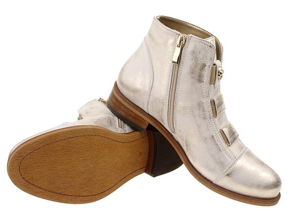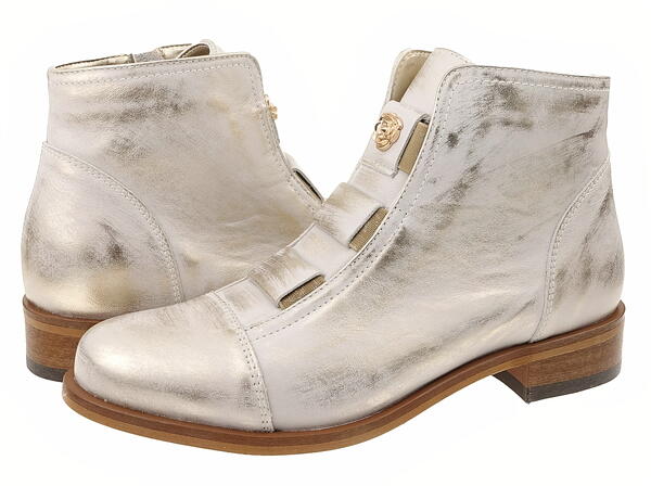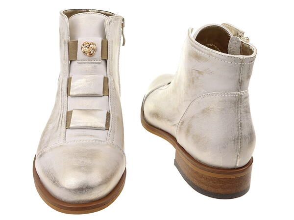 Skórzane, oryginalne, ponadczasowe botki damskie znanej, polskiej marki Eksbut 7375 w złotym kolorze.