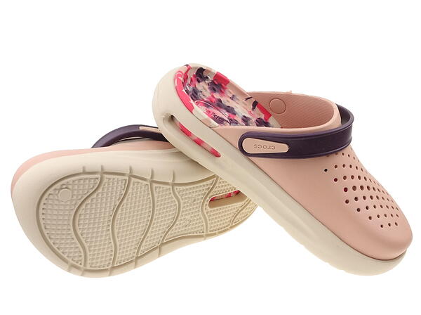 Modne, oryginalne cudownie komfortowe klapki damskie amerykańskiej marki Crocs Inmotion Marbled Clog 212043-7AF w kolorze pudrowy róż.