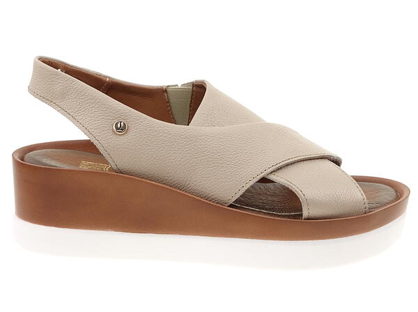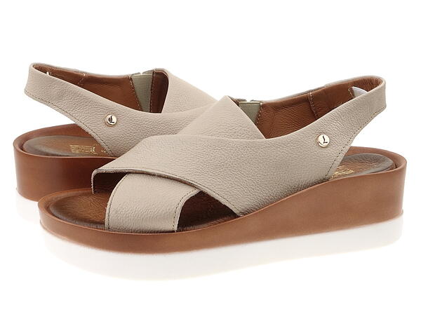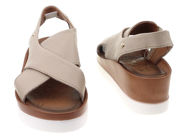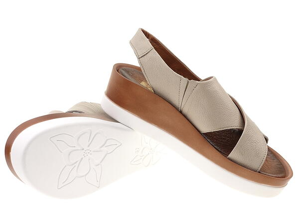 Połączenie ciemnobeżowej skóry na cholewkach z dwukolorową podeszwą podkreśla nowoczesny a zarazem kobiecy wygląd sandałów.
