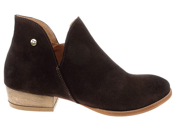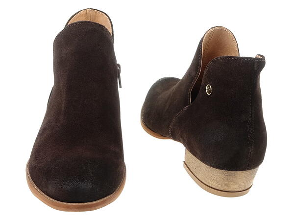 Cholewki z miękkiej, welurowej skóry naturalnej w odcieniu czekoladowego brązu najbardziej pożądanego w bieżącym sezonie, wyglądają bardzo kobieco i pasują do wielu różnorodnych stylizacji.