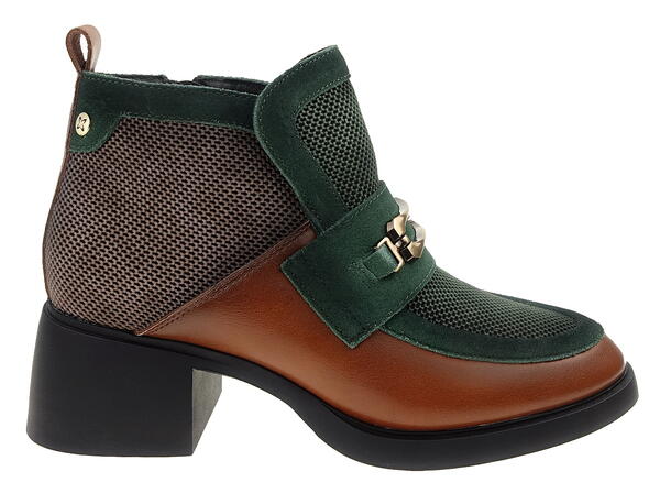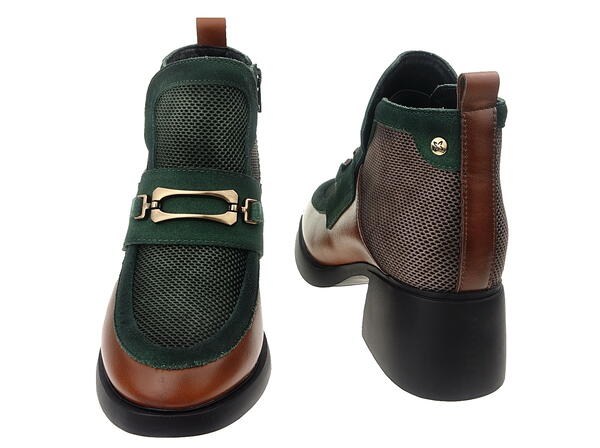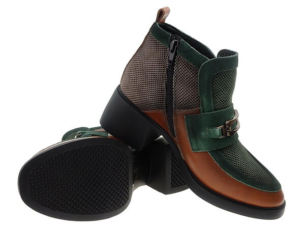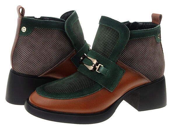 Botki wykonane zostały z przyjemnej, naturalnej skóry licowej połączonej z mocną, elastyczną tkaniną w ciekawym zestawieniu kolorystycznym, dzięki czemu obuwie wygląda młodzieżowo i niepowtarzalnie.