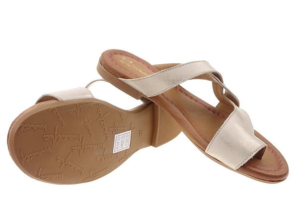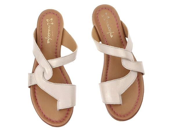 Najmodniejsze, oryginalne bardzo wygodne, skórzane klapki damskie, renomowanej, polskiej marki Maciejka 6982-25 w kolorze złotym.