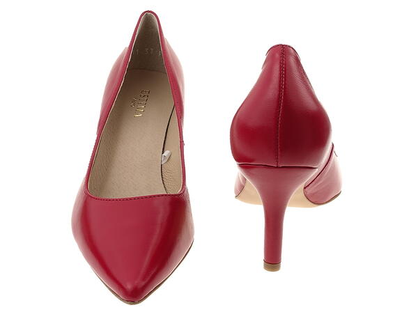 Piękne, klasyczne czółenka z linii Estima wykonane z najmodniejszej obecnie skóry licowej w kolorze czerwonym. Idealne obuwie do codziennego użytkowania, a także na wyjątkowo okazje. Masz pewność, że w tych butach poczujesz się elegancko i kobieco.