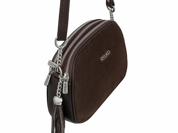 Skórzana, modna, oryginalna torebka damska marki Ryłko R40526TB w brązowym kolorze.