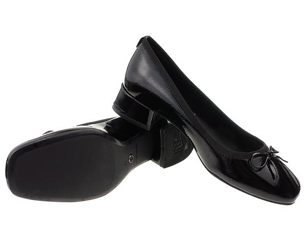 Czółenka linii Vegan zostały wykonane z ekologicznej skóry lakierowanej bardzo miękkiej i przyjemnej w dotyku w klasycznej, eleganckiej czerni z najmodniejszym kwadratowym noskiem.