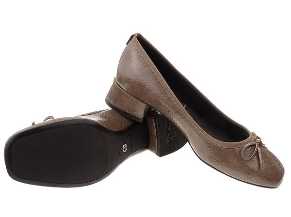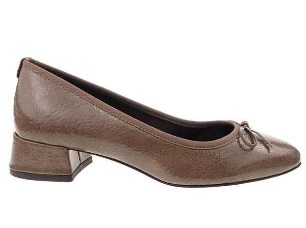 Czółenka linii Vegan zostały wykonane z ekologicznej skóry lakierowanej bardzo miękkiej i przyjemnej w dotyku w odcieniu ciemnego beżu z najmodniejszym kwadratowym noskiem.