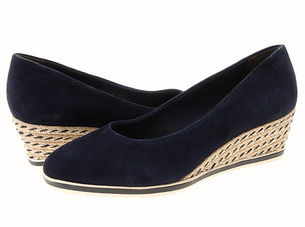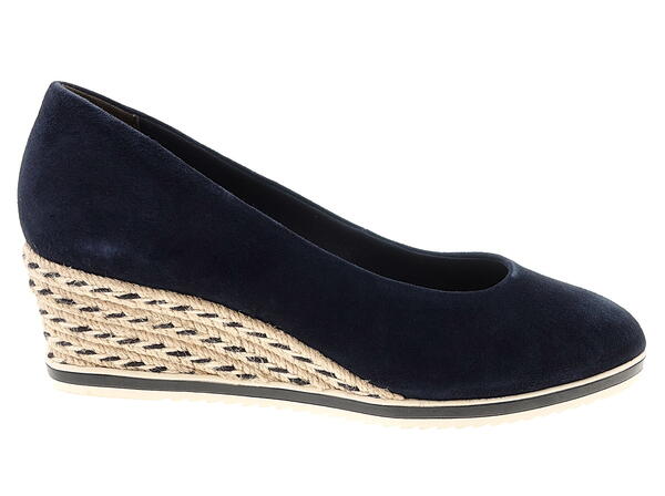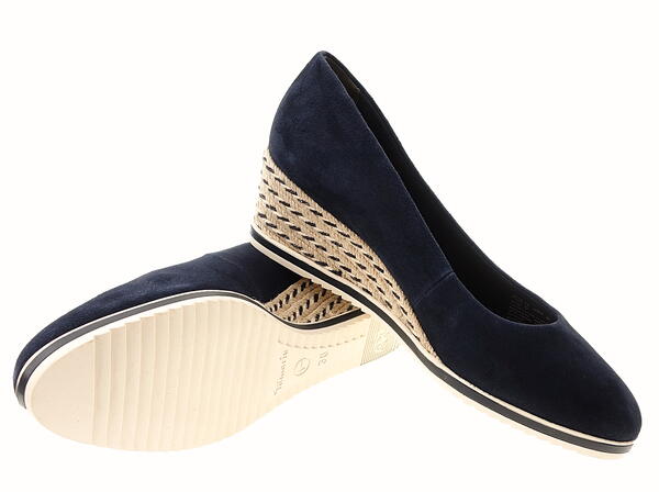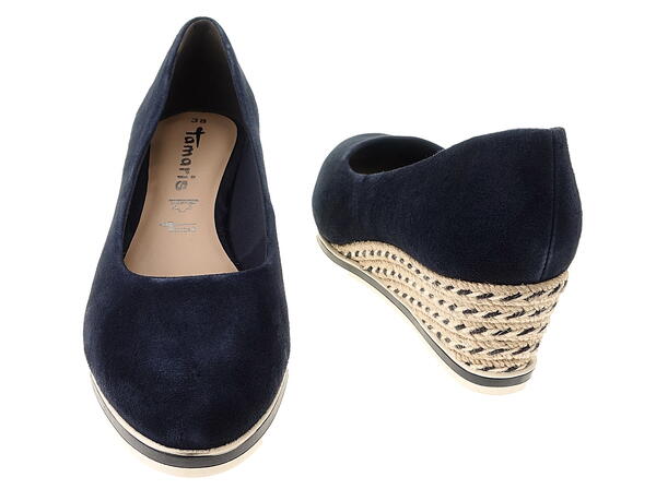 Oryginalne, wygodne, skórzane koturny damskie renomowanej, niemieckiej marki Tamaris 22303 w kolorze granatowym z systemem Antislide.