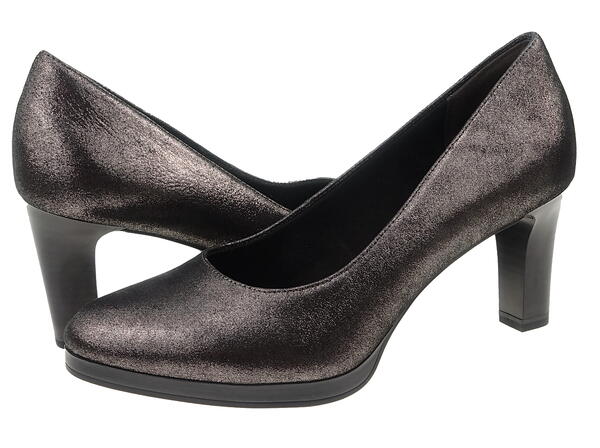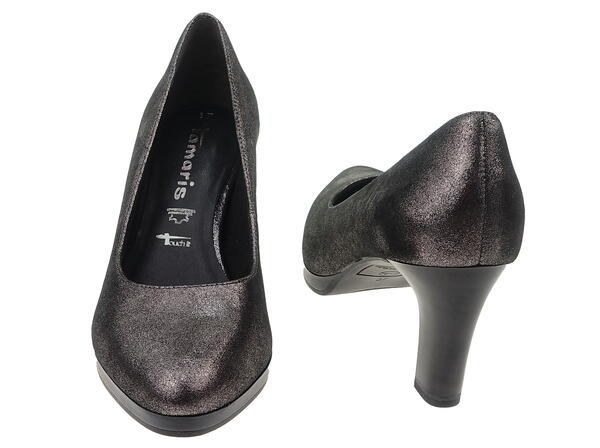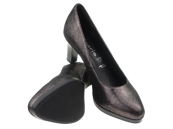Oryginalne, eleganckie bardzo kobiece i komfortowe czółenka niemieckiej marki Tamaris 22433 w czarnym kolorze połyskującym srebrem.