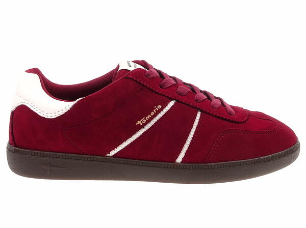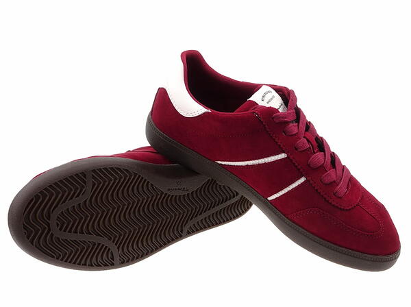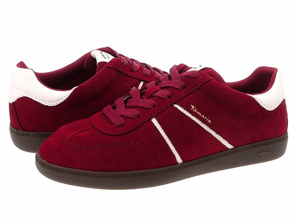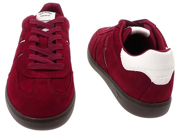 Oryginalne, komfortowe, najnowsze obuwie damskie w sportowej stylizacji renomowanej, niemieckiej marki Tamaris 23624 w kolorze bordowym.