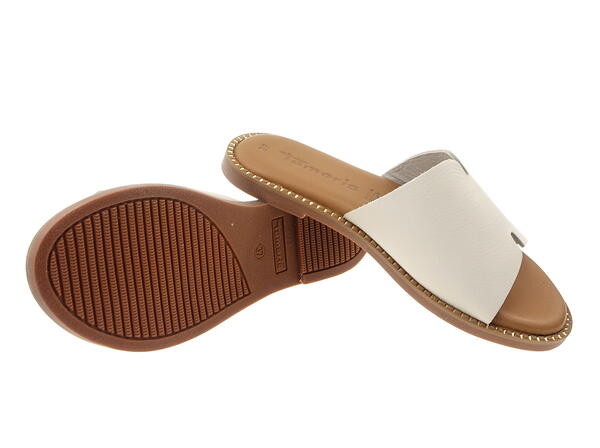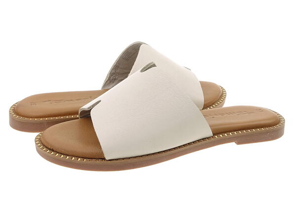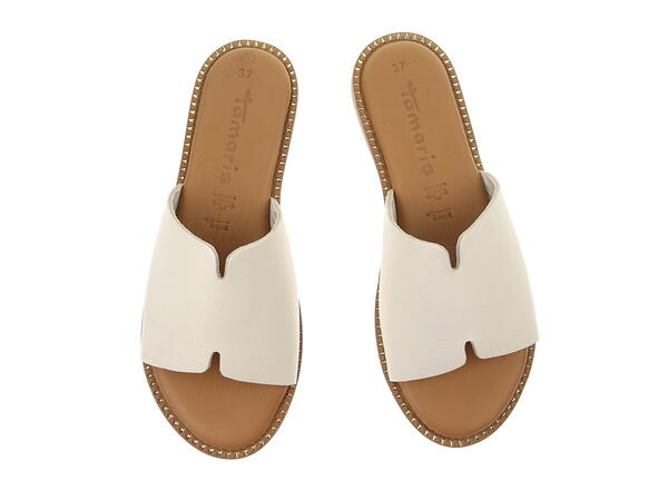 Oryginalne, bardzo wygodne, skórzane klapki niemieckiej marki Tamaris 27135 w beżowym kolorze.