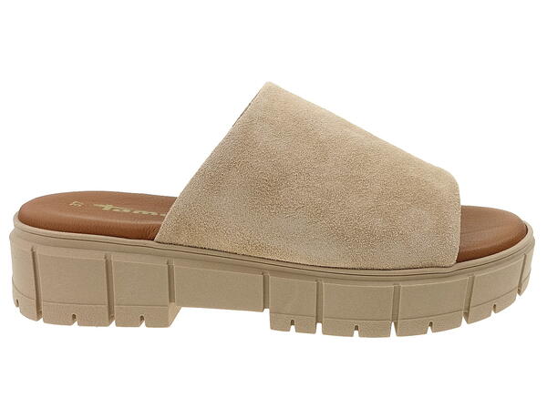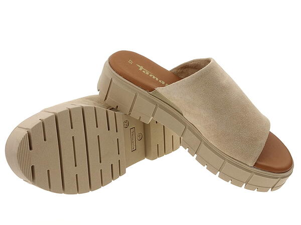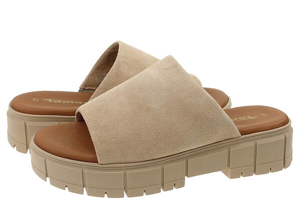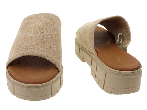 Oryginalne bardzo wygodne, najmodniejsze, skórzane klapki damskie niemieckiej marki Tamaris 27252 w kolorze beżowym.