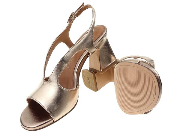 Słupkowe, stabilne obcasy zapewniają maksymalną wygodę i dodają sandałom zdecydowanie niepowtarzany wygląd.
