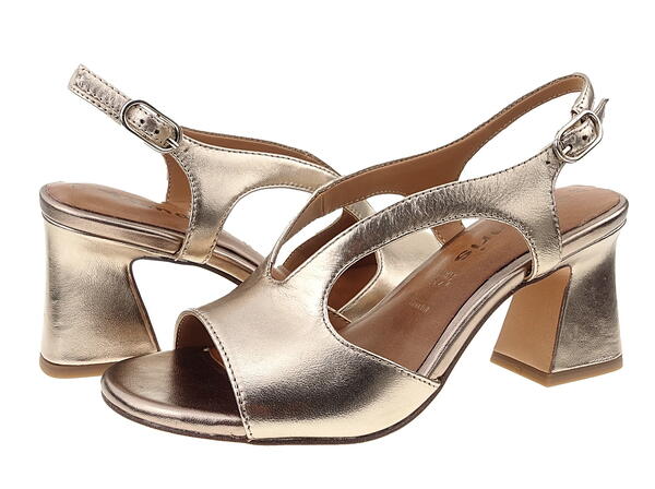 Oryginalne, skórzane w stylu retro, wygodne sandałki damskie, niemieckiej marki Tamaris 28316 w złotym kolorze.