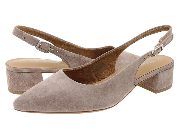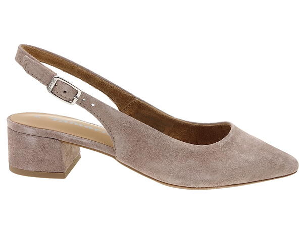 Obuwie z krytymi palcami na niskim, stabilnym obcasie w odcieniu ciemnego beżu nadaje się również na eleganckie wyjścia.