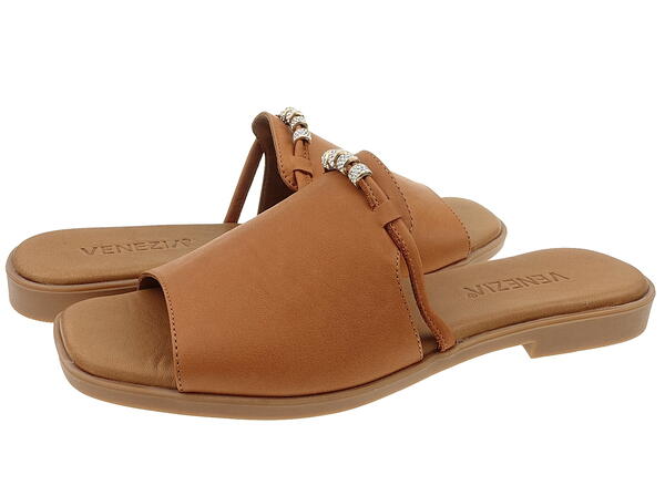 Skórzane, oryginalne, modne klapki damskie ekskluzywnej marki Venezia B031LEBROBK110 w kolorze brązowym.